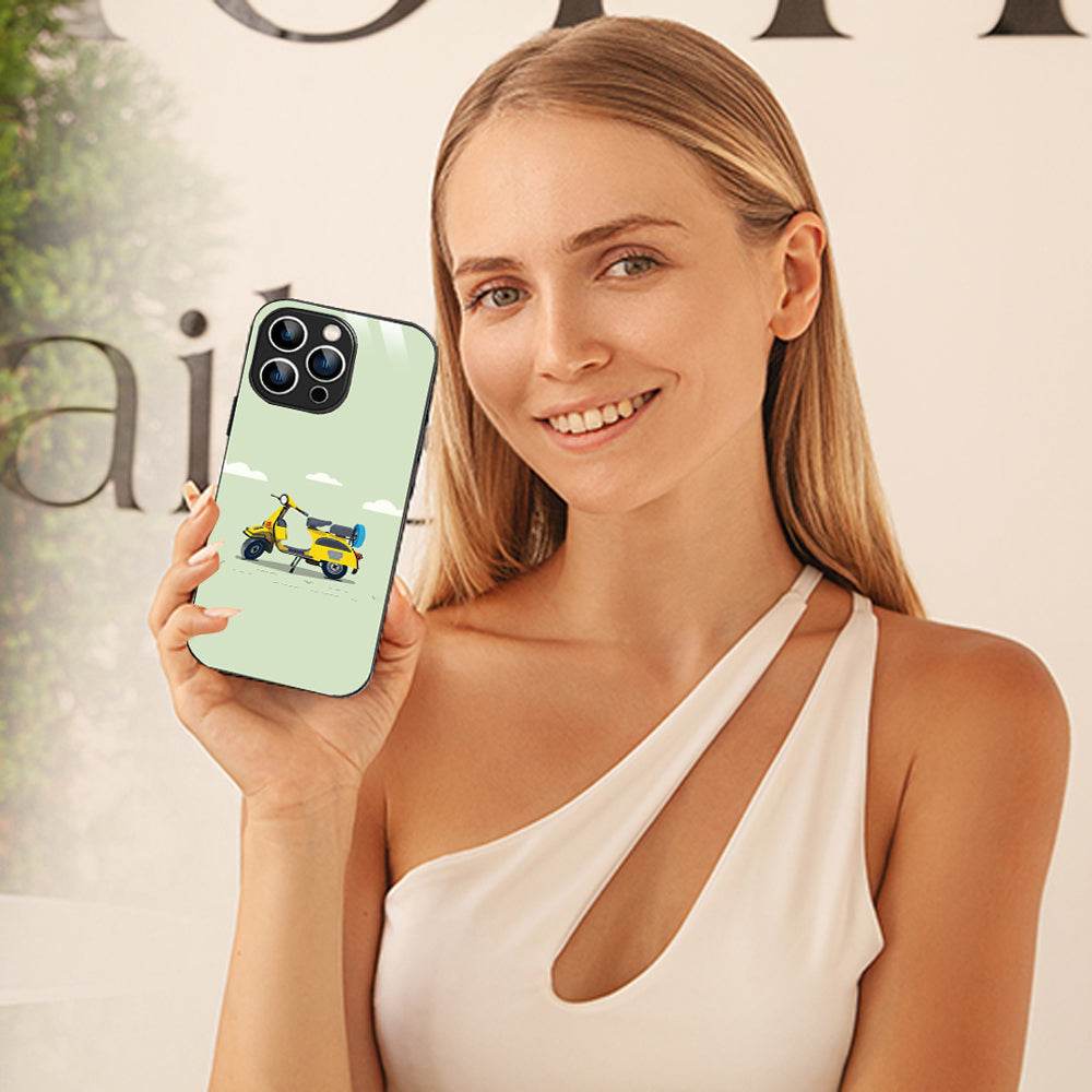 Welcome to Bornstud, where vibrant aesthetics meet advanced functionality. Our Yellow scooter Vector Mobile Back Cover is crafted for those who love artistic designs with a touch of sophistication. Featuring a dynamic and flowing color pattern, this cover transforms your iPhone into a stunning work of art. The 2D glass finish enhances the vivid colors, providing a premium and glossy appearance that is built to last.