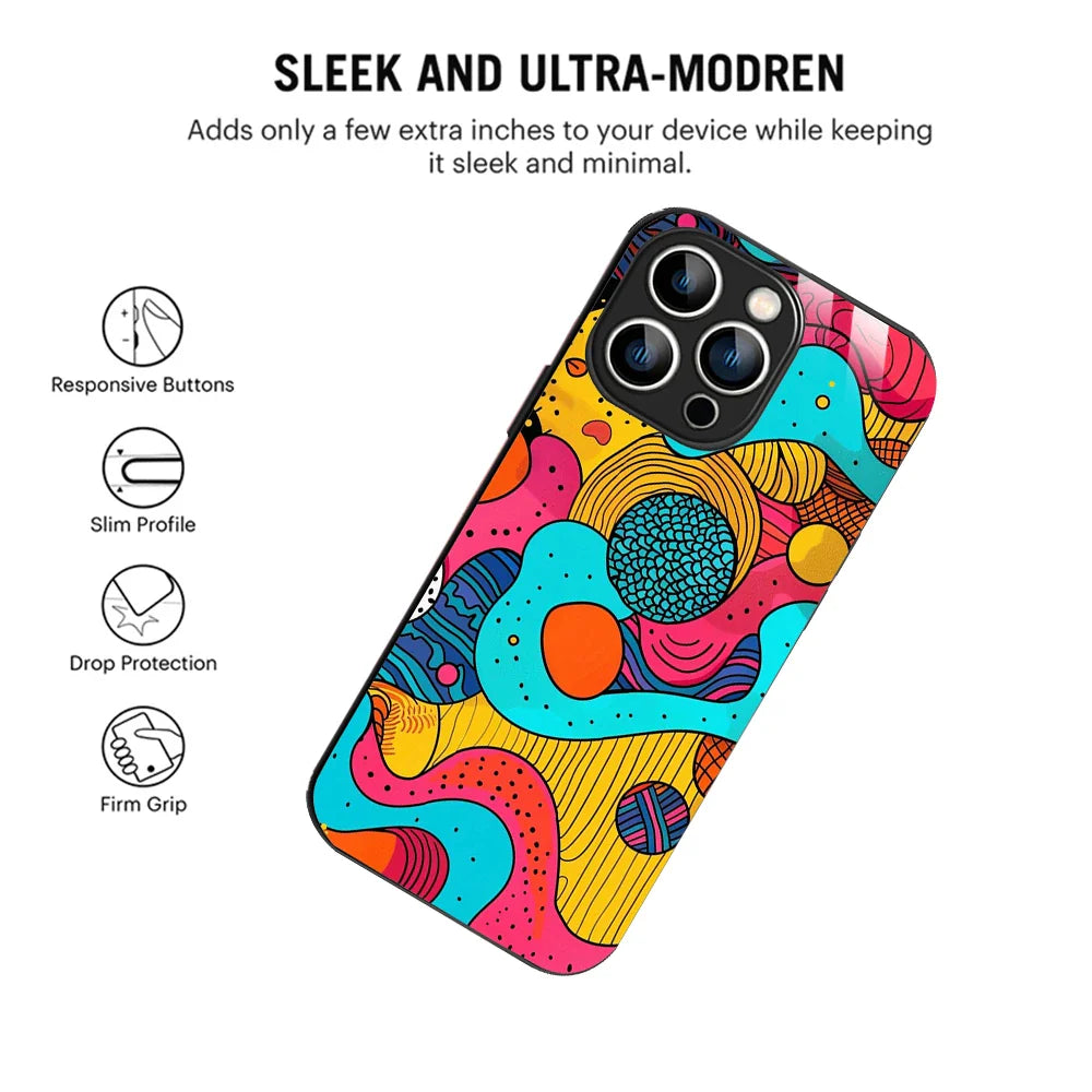 Welcome to Bornstud, where vibrant aesthetics meet advanced functionality. Our Cosmic Chaos Mobile Back Cover is crafted for those who love artistic designs with a touch of sophistication. Featuring a dynamic and flowing color pattern, this cover transforms your iPhone into a stunning work of art. The 2D glass finish enhances the vivid colors, providing a premium and glossy appearance that is built to last.