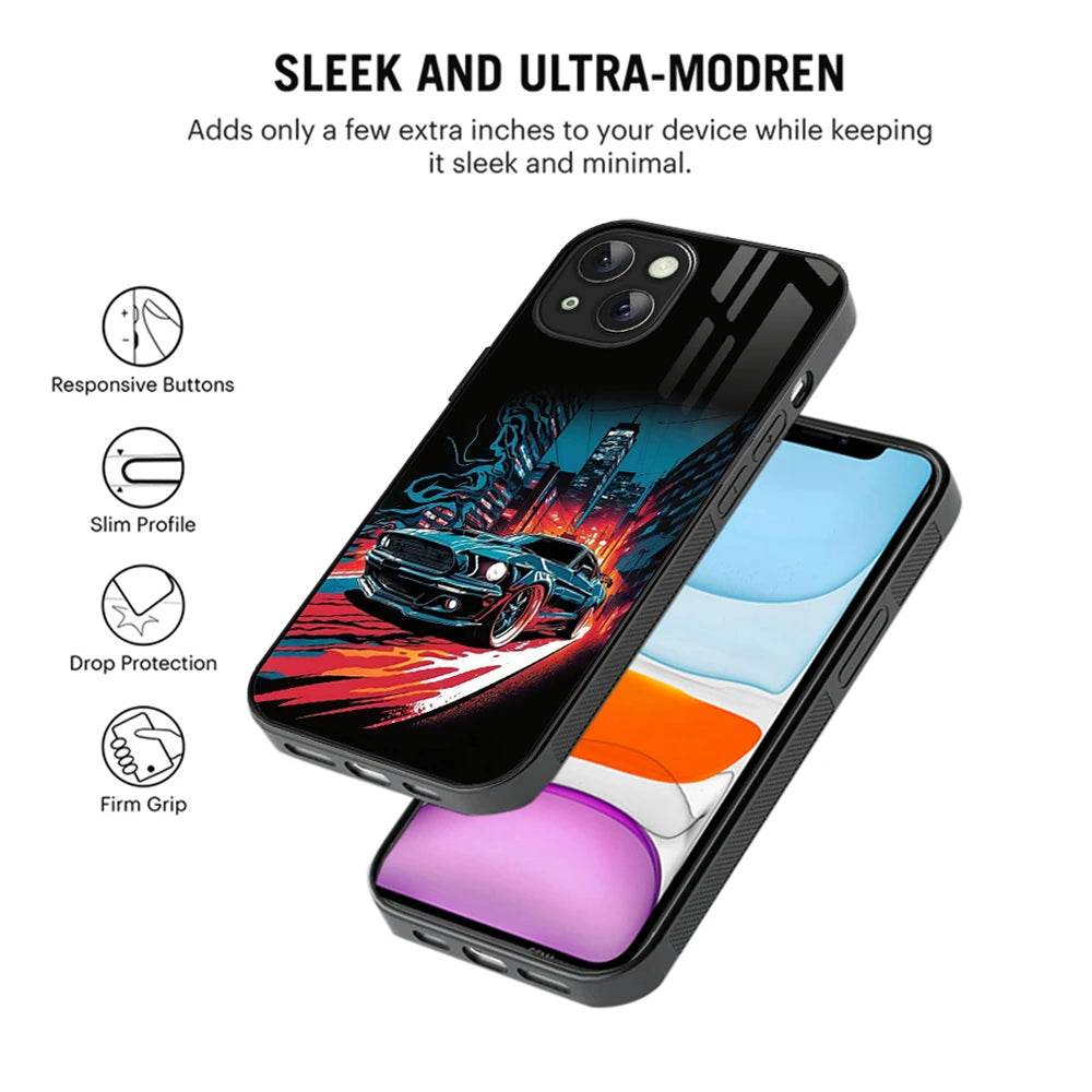 Elevate Your iPhone 13 Experience with Bornstud's 2D Glass Printed Car Mobile Back Cover
