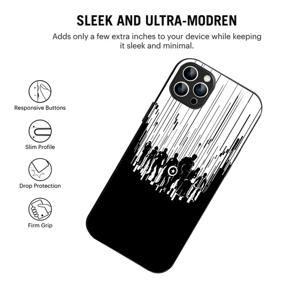 Welcome to Bornstud, where vibrant aesthetics meet advanced functionality. Our Avengers Silhouette Art Mobile Back Cover is crafted for those who love artistic designs with a touch of sophistication. Featuring a dynamic and flowing color pattern, this cover transforms your iPhone into a stunning work of art. The 2D glass finish enhances the vivid colors, providing a premium and glossy appearance that is built to last.