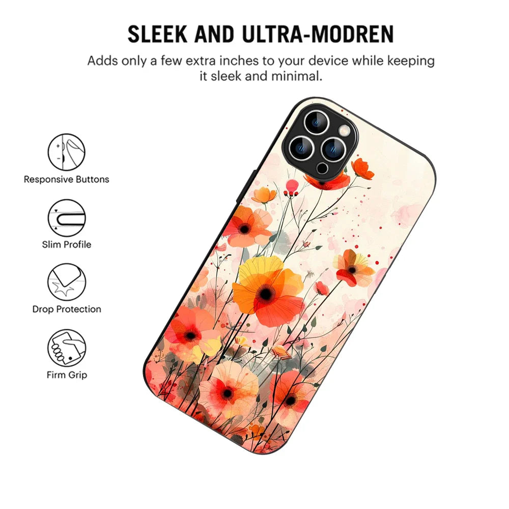 Welcome to Bornstud, where vibrant aesthetics meet advanced functionality. Our Blooming Poppy Floral orange Mobile Back Cover is crafted for those who love artistic designs with a touch of sophistication. Featuring a dynamic and flowing color pattern, this cover transforms your iPhone into a stunning work of art. The 2D glass finish enhances the vivid colors, providing a premium and glossy appearance that is built to last.